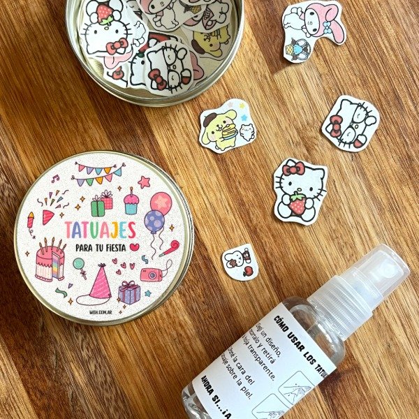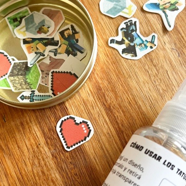 • 1 botellita tipo spray, para llenar con agua para facilitar la aplicación. (Viene con instrucciones para aplicar los tatuajes).